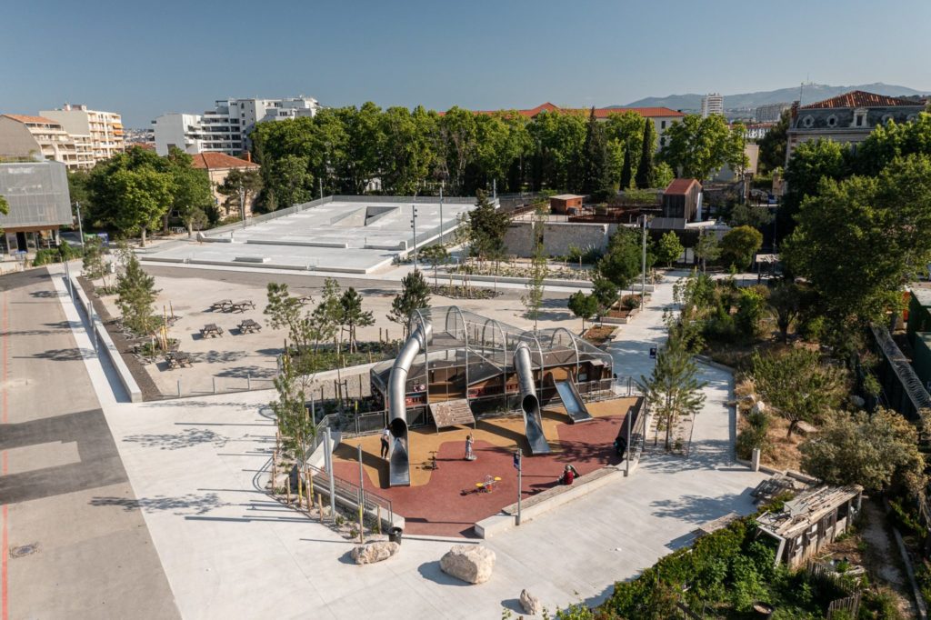 Le Champ de Mai, conçu par l’architecte marseillaise Kristell Filotico et l’Atelier Roberta, est une nouvelle ”place-jardin”. Cet ouvrage a été récompensé par l’Equerre d’Argent, prix décerné par le Moniteur et AMC, dans la catégorie ” Espaces Publics et Paysagers.”