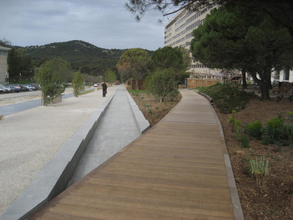 Les abords du BHNS du campus de Luminy.