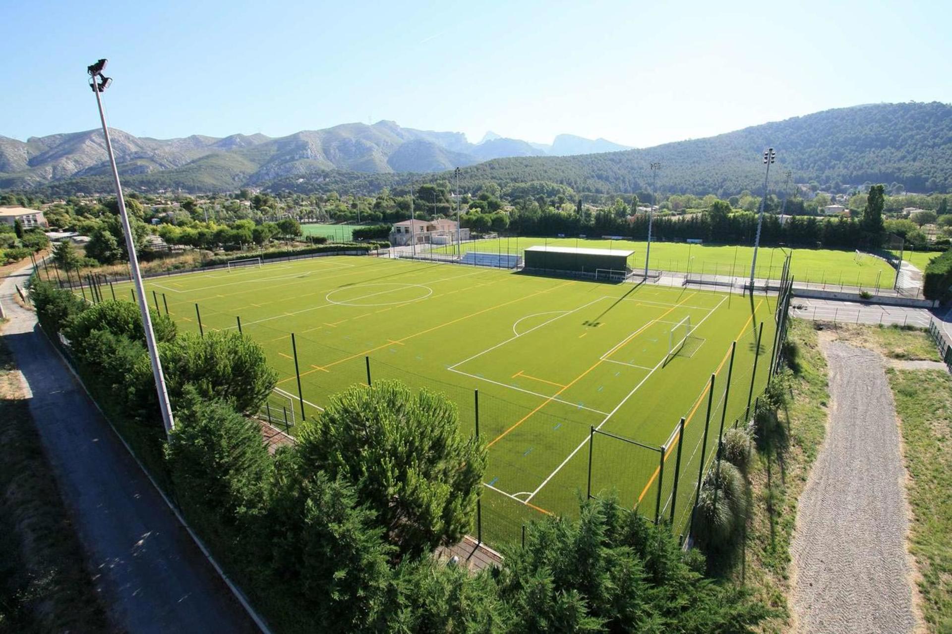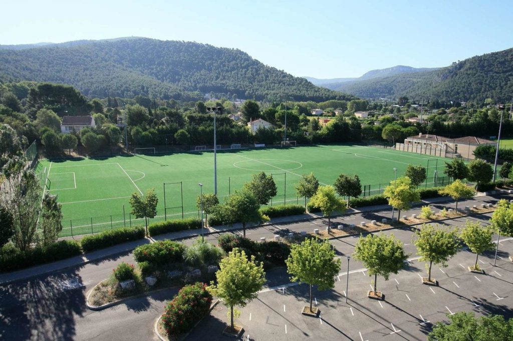 Nous avons réalisé la création du terrain de football de la ville de Géménos en 2012.